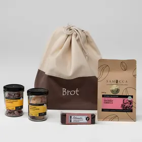 Der kleine Geschenkkorb Gaumenfreude vereint sorgfältig ausgewählte Bio-Spezialitäten zu einem besonderen Genussgeschenk. Der Bio Kaffee Gourmet Samocca sorgt für aromatischen Kaffeegenuss, während die veganen Bio Wildberry Cashews und die veganen Bio Weingummis fruchtig-nussige Vielfalt bieten. Abgerundet wird das Sortiment durch einen Bio Schmatz vegan als süße Ergänzung. In der stilvollen Brottasche arrangiert entsteht ein hochwertiges Geschenkset, das sich ideal zum Verschenken und Genießen eignet.